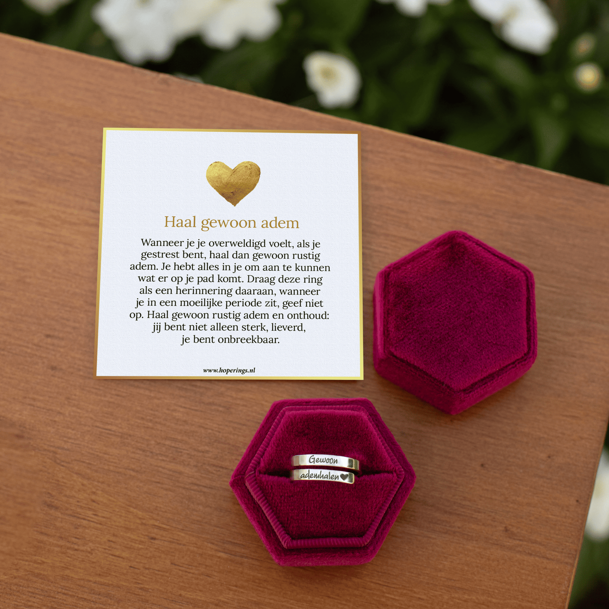 “Ik voelde me niet mezelf de laatste tijd. Ik kreeg de ring van een vriendin om me door een moeilijke tijd heen te helpen. Geweldige ring! Hij biedt me troost en herinnert me eraan dat ik mensen aan mijn zijde heb. Deze ring betekent veel voor mij.“